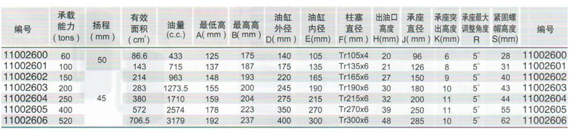 超薄型螺母鎖緊式油缸承載能力:60-500噸,揚程:45、50mm,最大工作壓力:700bar。